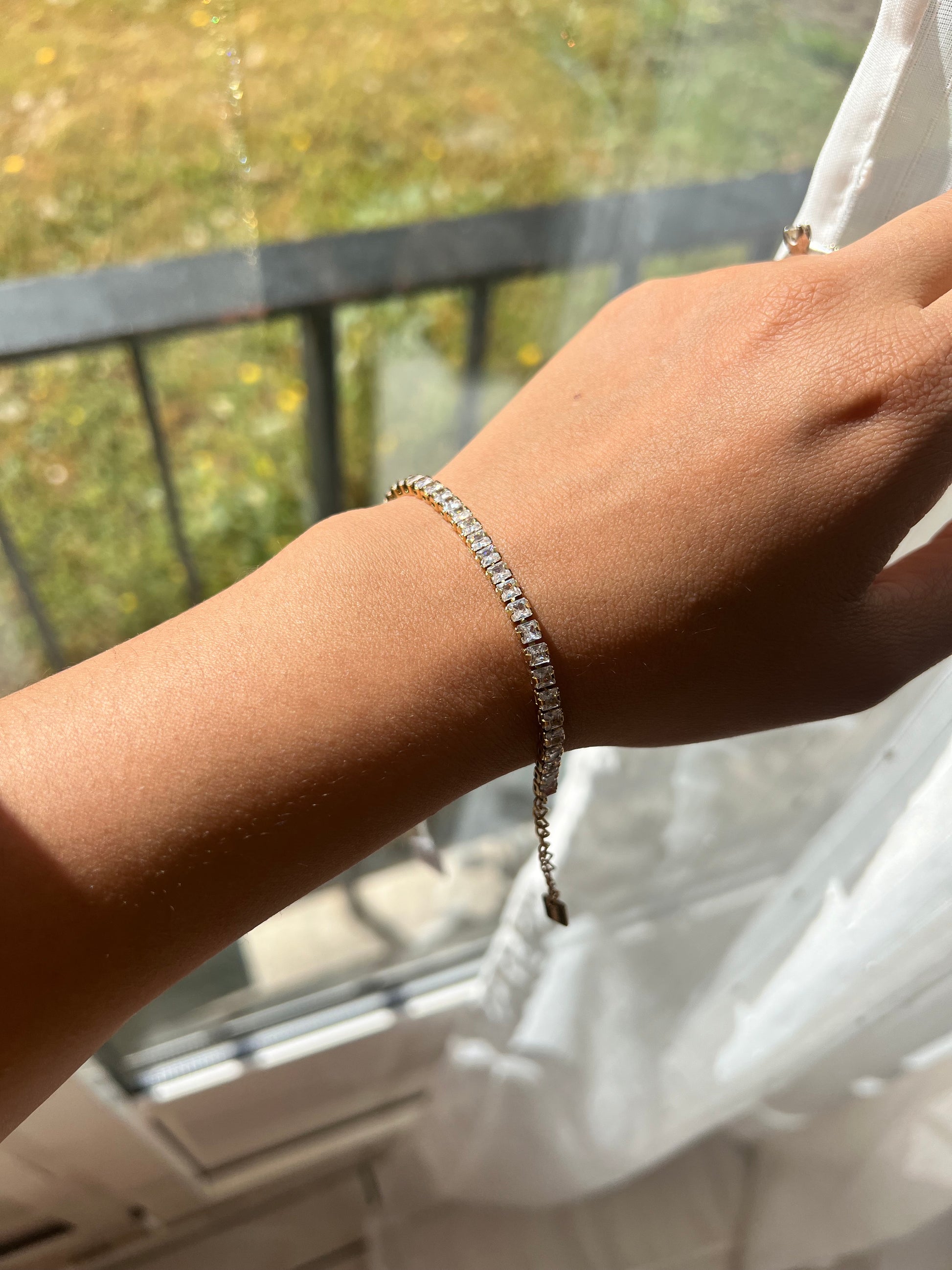 fin et inspirant l'amour . Des carrés de zircons très brillants pour un look glamour .